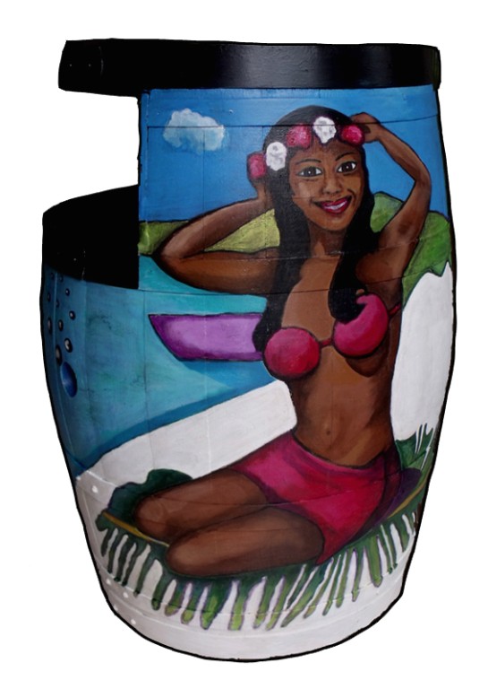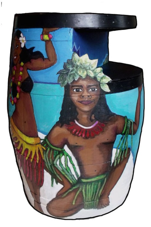 Bar taillé dans une barrique. Peinture à l'huile recouverte de peinture acrylique.